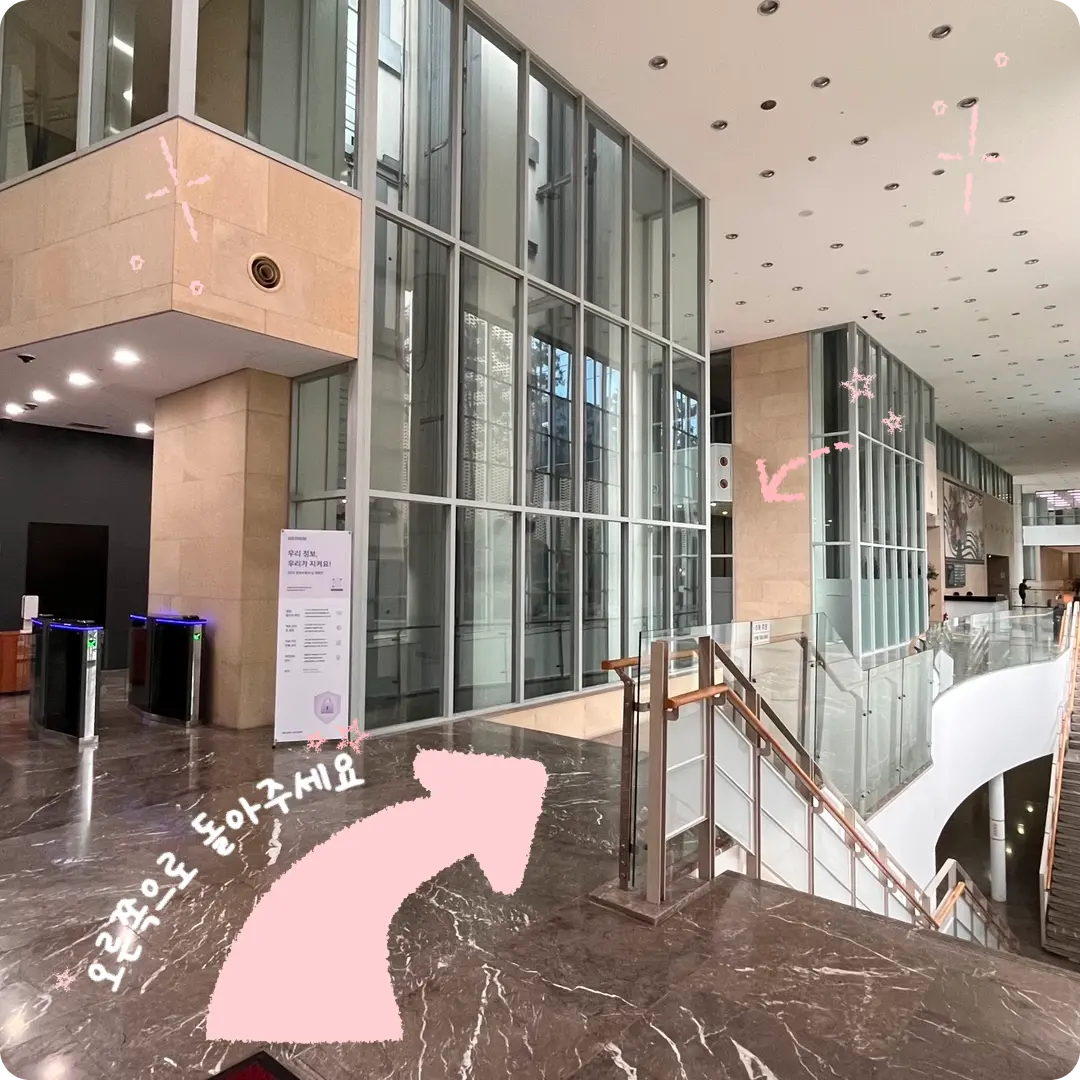 인포데스크를 지나 그 벽 쪽으로 걸어오신 뒤,